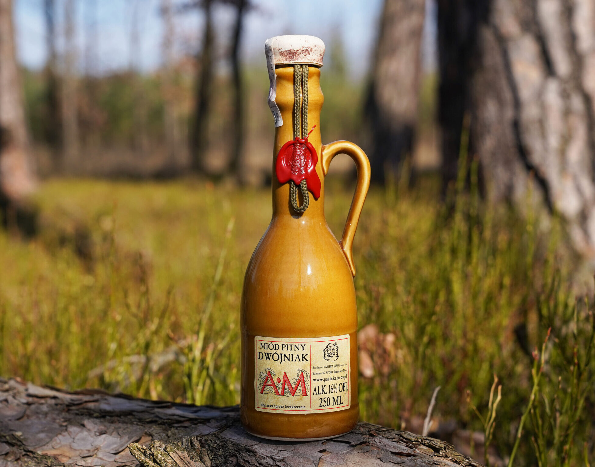 Miód pitny dwójniak AM w ceramicznej butelce o pojemności 250ml.