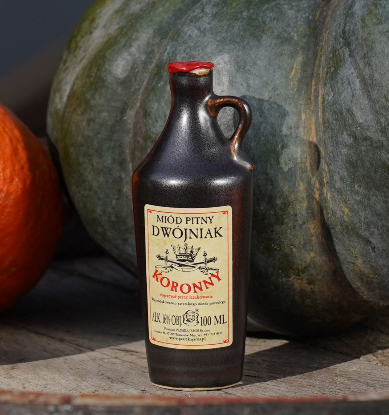 Miód pitny dwójniak Koronny – typowy dwójniak produkowany w równych częściach z miodu i wody z domieszką soków owocowych z bzu i aronii. Produkowany z dużym dodatkiem miodów ciemnych jesiennych. Dojrzewał przez leżakowanie. Rozlewany jest do butelek kamionkowych jak również do butelek szklanych. Zawartość alkoholu ok. 16%. Odznacza się świeżością oraz tak typową dla polskich miodów głębią aromatów i aksamitną gładkością.